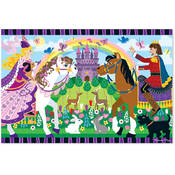 The friendly prince and princess invite you into their glorious kingdom under the rainbow. Measuring 2' x3' when complete, it features 24 extra-thick pieces that are 20% thicker than the competition's. The easy-clean surface keeps this puzzle looking new. For ages 3 years and up.