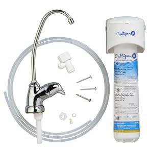 The Culligan EZ-Change Under-Sink Drinking Water Filtration System ensures your family will have a clean, fresh water supply from your water faucet. Featuring a handy twist-on, twist-off mechanism for easy installation and changing, this filter protects against bad tastes, odors, and harmful particulates that can penetrate water. The EZ-Change Under-Sink Filter features a 3,000-gallon capacity, and it is NSF certified for drinking safety.EZ-Change Under-Sink Drinking Water Filtration SystemAt a Glance:Removes bad tastes and odors from waterFeatures twist-on, twist-off mechanism for easy filter changesPurifies up to 3,000 gallons of waterDouble water shutoffTwo-year limited warrantyThis water filtration system purifies up to 3,000 gallons of water while eliminating bad taste and odor. View larger.Reduces Bad Tastes and OdorsThe Culligan EZ-Change Under-Sink Drinking Water Filtration System helps keep your family healthy and hydrated by providing clean water through your faucet. Able to be connected discreetly below your sink, this filter removes nasty odors and tastes, chlorine odor and taste, and Class-III particulates that can penetrate water. Your water will not only taste great, but it will also maintain its pure, fresh smell.EZ-Change Filters Offer Mess-Free ReplacementThe EZ-Change Filter fits easily with any sink's water system to keep fresh water at your family's fingertips. Designed for convenience, this lightweight filter can be installed and replaced in mere minutes with the simple twist-on, twist-off mechanism. Additionally, handy quick-connect fittings ensure the filter stays in place until it needs to be changed, so you don't need to worry about hidden leaks or spills.Safe and Long LastingCertified by the NFC, the EZ-Change Under-Sink Filter provides your family with a safe drinking supply. The filter will purify up to 3,000 gallons before needing to be changed.The EZ-Change Under-Sink Drinking Water Filtration System is backed by a manufacturer's limited two-year warranty.Culligan Filtration: Providing Families with Clean, Healthy WaterA recognized leader in water filtration and softening products and solutions, Culligan offers filtration and treatment solutions available for all parts of the household. Culligan's drinking-water and working-water filtration systems help solve tough water problems to give you clean, clear water for your entire home.What's in the BoxFilter head with built-in bracket; RC-EZ-1 Level 1 replacement filter cartridge; mounting screws; supply adapter; lead-free faucet; 1/4-inch plastic tubing; filter-change reminder sticker; and instructions.