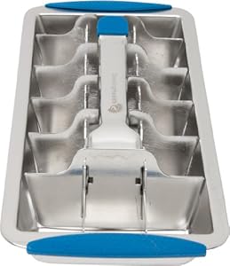 Aesthetically pleasing, easy to use. The Pure Ice Stainless Steel Ice Cube Tray can complement almost any kitchen, and the sleek, gleaming metallic finish makes the ice cube tray very easy on the eyes. The blue silicone comfort grips allow for easy removal from the fridge without slipping from your fingers or freezer burn.