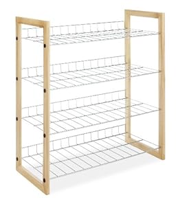 Closet shelves with 4 chromed wire shelves that have a vertical back lip that keep items from falling in back of the unit. Beautiful natural wood frame give the closet shelves that finishing touch to an attractive piece of furniture storage. Great item for shoes, sweaters, purses and accessories. Use on top shelf of closet or underneath hanging cloths. Closet shelves will complement any room in the house or office. Product Measures: 25" wide x 11.6" long x 27.5" tall/deepFeatures: 4-tier shelving unit for closets to help you get organizedNatural wood frame with 4 chromed wire shelvesGreat for storing shoes, sweaters, purses, accessories, and moreUse on top shelf of closet or underneath hanging clothesMaterial: Wood & Chrome